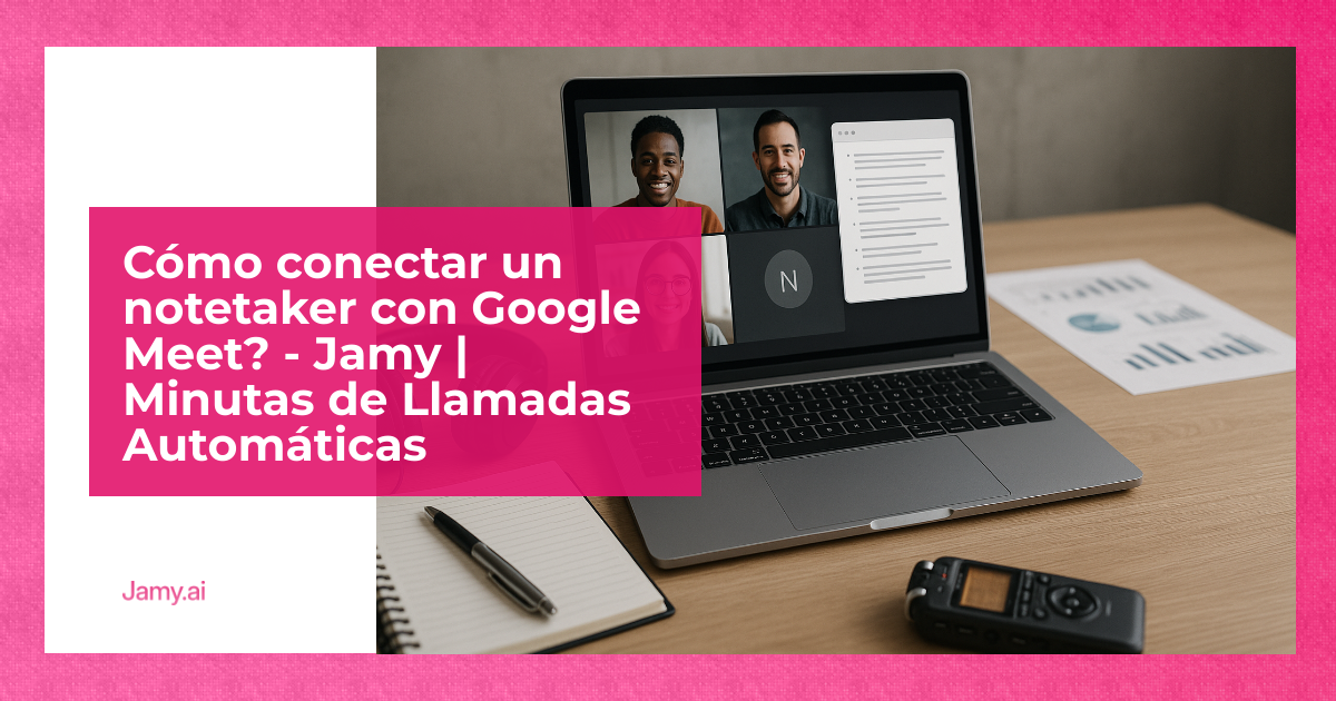Conectar un asistente de notas como Jamy.ai con Google Meet es sencillo y puede ahorrarte tiempo en la documentación de reuniones. Este asistente de IA se une automáticamente a tus llamadas, graba, transcribe y organiza la información clave. Aquí tienes un resumen rápido de cómo empezar: