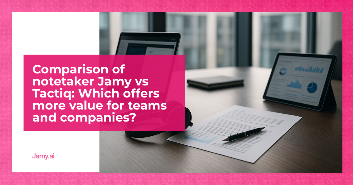 In summary, Jamy is better suited for business teams that value a comprehensive and advanced solution, while Tactiq is perfect for small teams or startups seeking a cost-effective and reliable option for transcriptions.