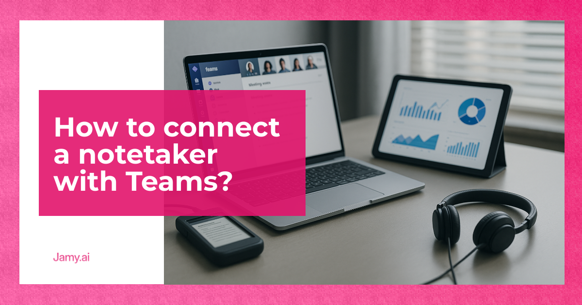 Do you want your Teams meetings to be more productive? Connecting a notetaker like Jamy.ai is the solution. This AI assistant automatically documents meetings, generating transcriptions, summaries, and task lists. You only need to link your calendar (Google or Outlook) and Jamy will discreetly join your meetings.