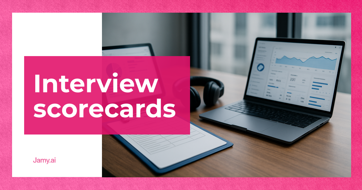 If you want less admin and cleaner interview evidence, consider pairing your scorecard with a consistent notes workflow. Jamy can help you capture decisions and next steps reliably, so hiring managers spend less time chasing write-ups.