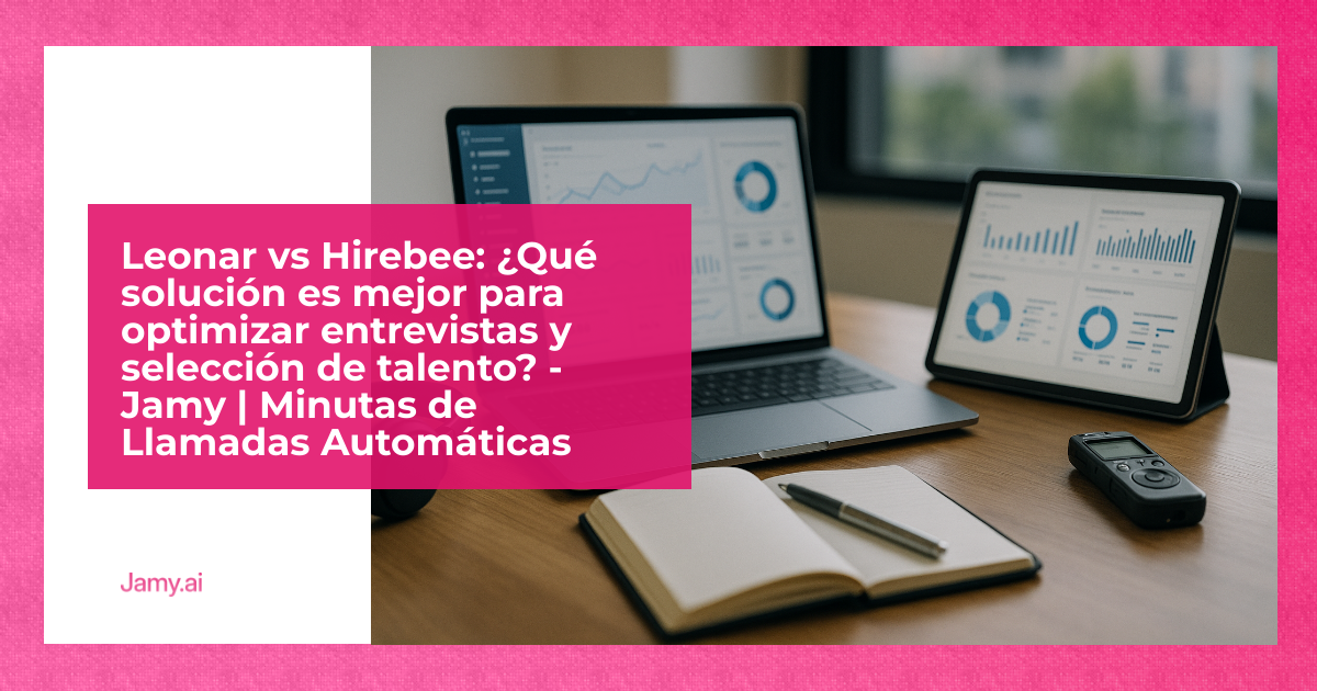 ¿Buscas mejorar tus procesos de entrevistas y selección de talento? Leonar y Hirebee son dos herramientas clave que automatizan tareas, ahorran tiempo y optimizan la gestión de equipos multilingües. Ambas ofrecen funcionalidades como generación de informes, transcripciones automáticas y compatibilidad con sistemas ATS. Pero, ¿cuál es mejor para ti?